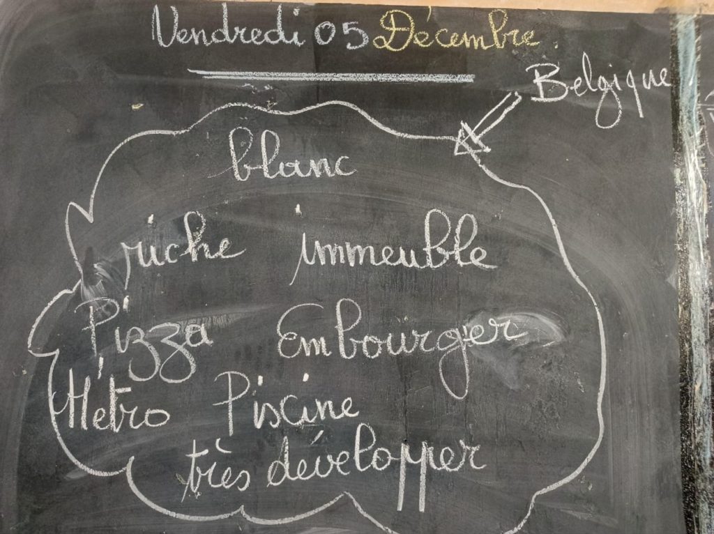 Ce sont les élèves sénégalais qui démarrent cette recherche. Ils divisent la classe en sous-groupes. Chaque groupe désigne un-e délégué-e qui vient expliquer un thème devant la classe.
